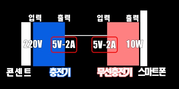 ์ค๋งํธํฐ์ด ๋ฌด์ ์ถฉ์ ๋ ๋ ๊ณผ์ ์ ์๊ฐ ํด๋ณด๋ฉด ์ฝ์ผํธ - ์ฝ์ผํธ์ ๊ฝ๋ ์ถฉ์ ๊ธฐ - ์ฐ๊ฒฐ์ - ๋ฌด์ ์ถฉ์ ๊ธฐ - ์ค๋งํธํฐ ์ ๋๋ค. ์ด๋ ์ฝ์ผํธ ์ถฉ์ ๊ธฐ์ ๋ฌด์ ์ถฉ์ ๊ธฐ์ ์ ํ ์ ์ถ๋ ฅ ๋จ์๋ ์๋ ๊ทธ๋ฆผ๊ณผ ๊ฐ์ต๋๋ค.